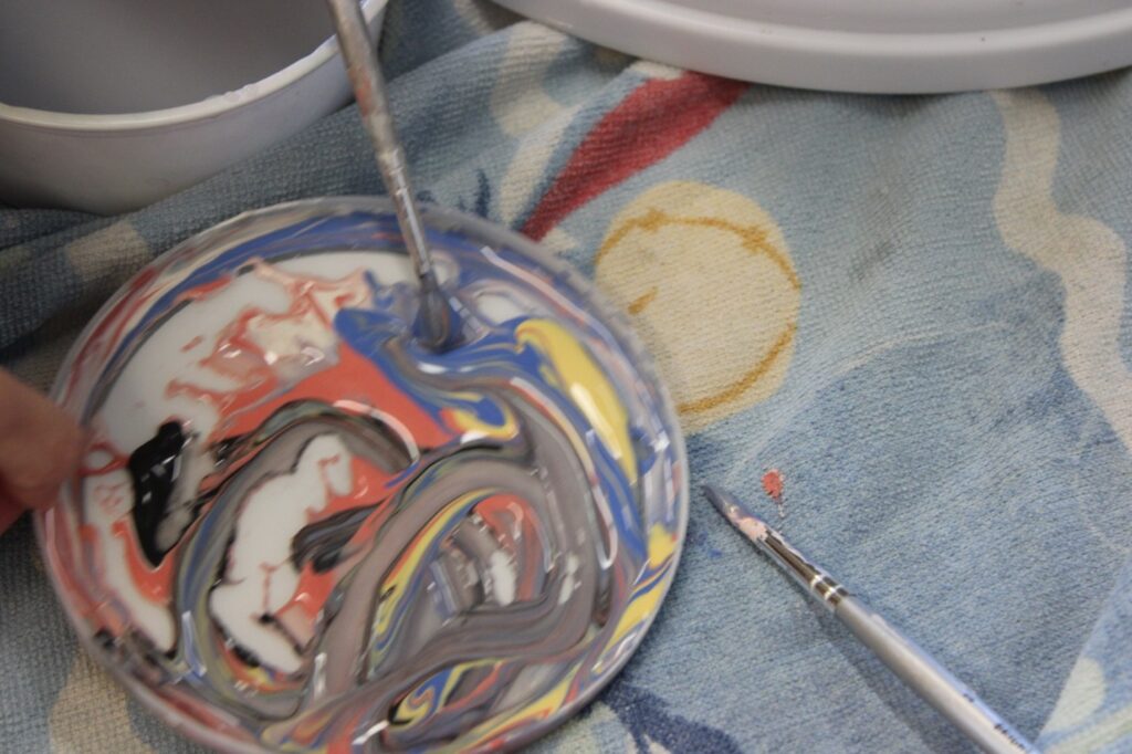 “Did you put this in the microwave yet?” Mabel asked as she applied paint to the vessel. “Is it a magic microwave?”