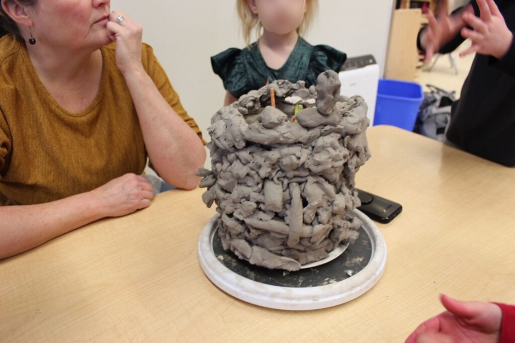 As the children engage with the vessel more carefully, we discuss possible next steps, including making the vessel “hard forever” by cooking it in a really hot oven called a kiln.