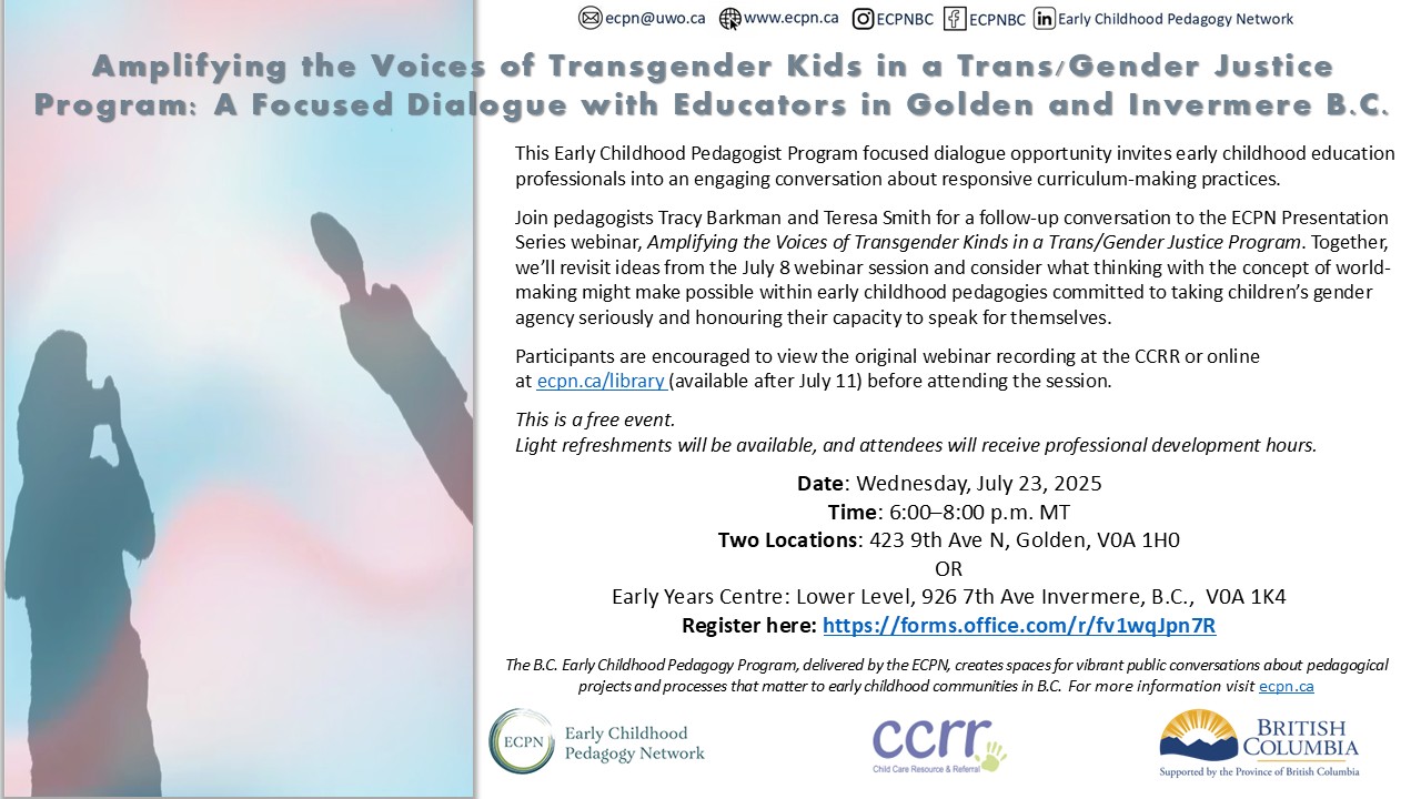Drawing on the voices, experiences, and perspectives of transgender children who participated in an affirming trans/gender justice camp in B.C., this webinar centers children as knowledge-holders and active participants in…