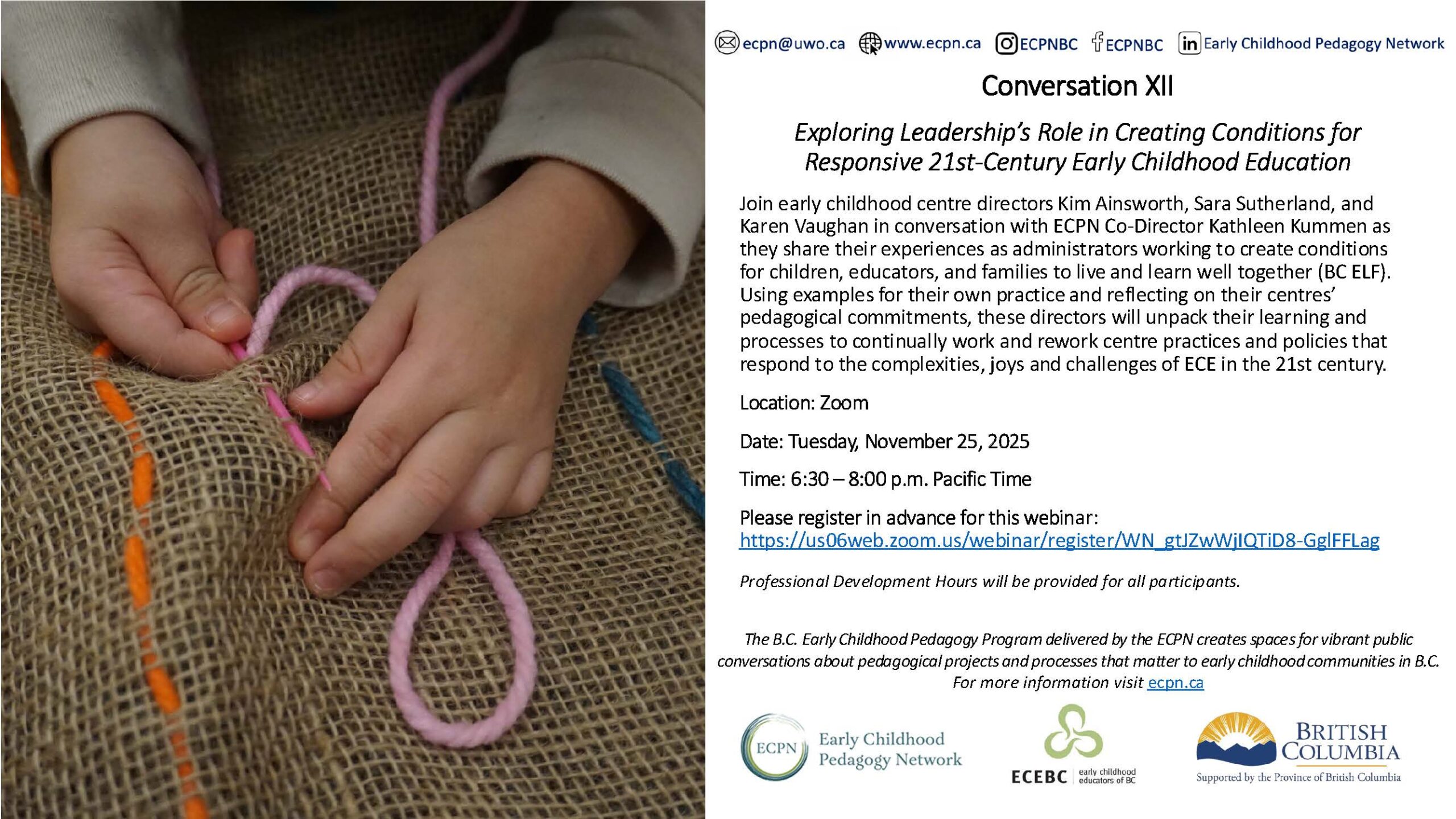 Join ECPN Directors and Coordinators for an online information session to learn more about the Early Childhood Pedagogist Program and the role of the pedagogist. In this 1-hour session we…